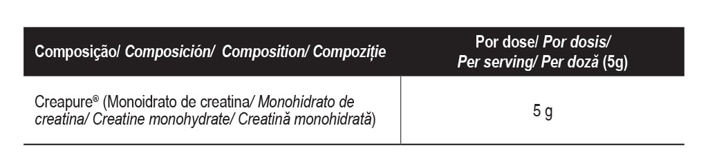 Zutaten: Kreatinmonohydrat - Creapure™ (100 %). Kann Spuren von Gluten und Sulfiten enthalten.