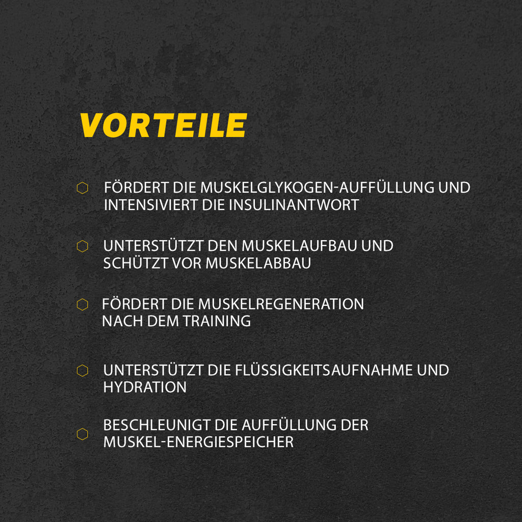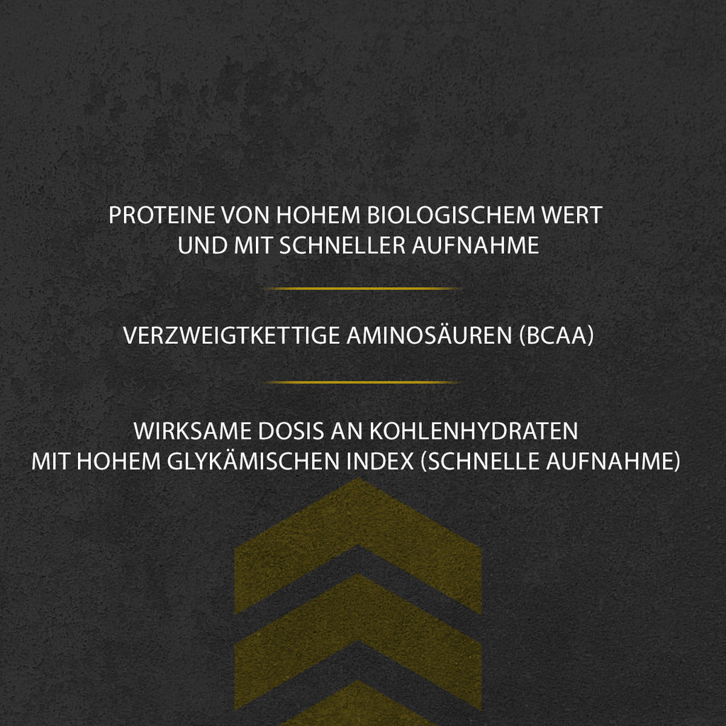 FAST RECOVERY GoldNutrition besteht aus Proteinen mit hohem biologischen Wert und schneller Absorption, einem Komplex verzweigtkettiger Aminosäuren (BCAAs) und einer wirksamen Dosis Kohlenhydrate mit hohem glykämischen Index (schnelle Absorption) und ist nahezu fettfrei. Darüber hinaus enthält es eine Reihe von Vitaminen und Mineralstoffen, die alle Stoffwechselprozesse im Zusammenhang mit der Aufnahme und Verwertung von Kohlenhydraten und Proteinen fördern und gleichzeitig das antioxidative und regenerative Potenzial dieser Formel erhöhen.