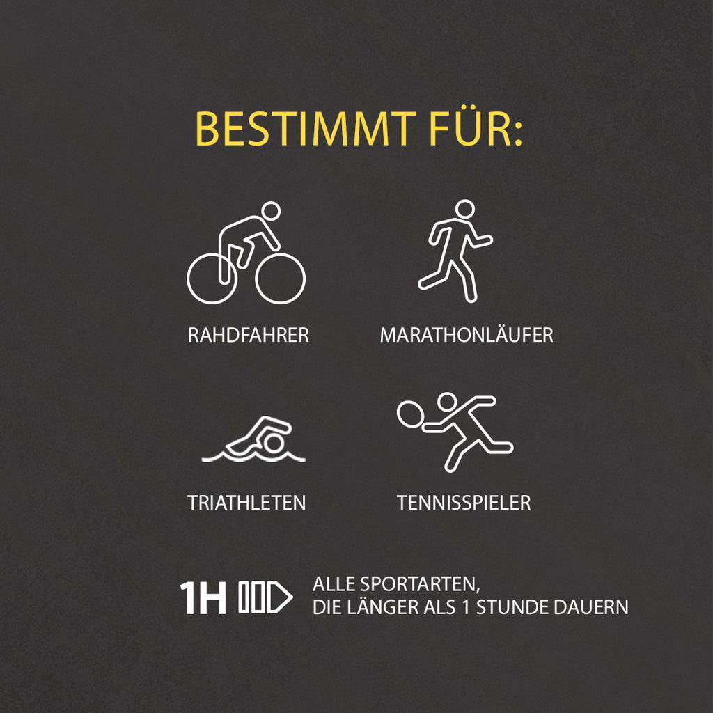 - Radfahrer, Marathonläufer, Triathleten, Tennisspieler und alle Sportarten, die länger als 1 Stunde dauern