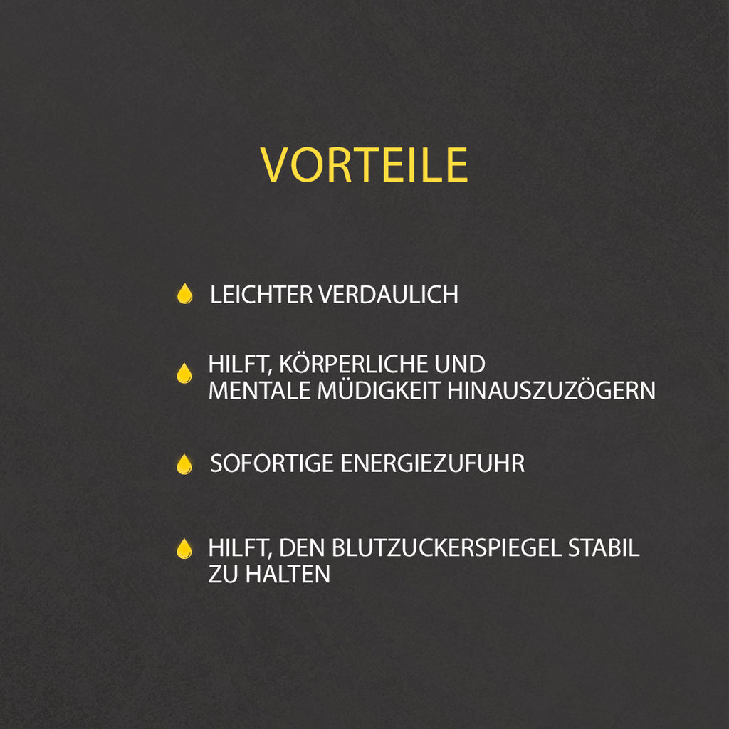 Dieses Energiegel enthält Maltodextrin und Fruktose als Kohlenhydratquellen und reduziert so den Zuckergehalt im Verhältnis zur Gesamtkohlenhydratmenge. In Verbindung mit einem höheren Wasseranteil ermöglicht die Verwendung von Maltodextrin eine Reduzierung der Gelosmolalität, was die Verdaulichkeit des Gels verbessert und so das Risiko von Darmbeschwerden während des Trainings oder Wettkampfs verringert.